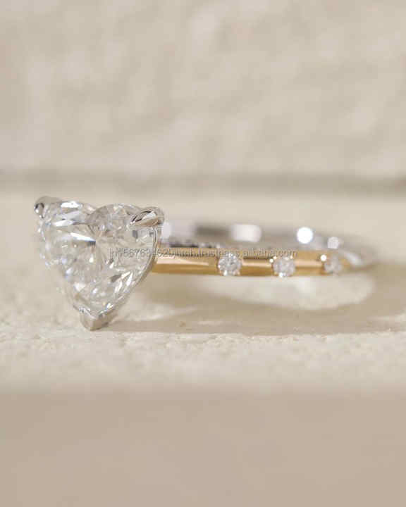 Bague de mariage/fiançailles vintage en or jaune 14 carats avec diamant taille cœur cultivé en laboratoire IGI, unisexe, en or blanc fin, idéale pour les anniversaires et les fêtes, sertie à griffes