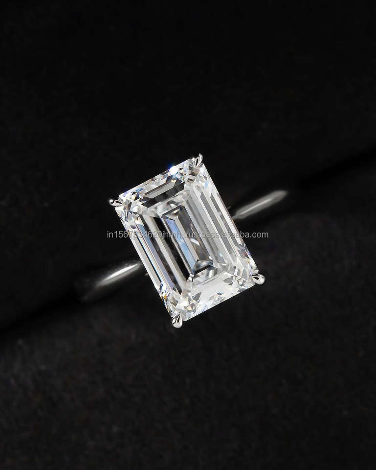 Bague de mariage/fiançailles unisexe en or blanc 14 carats avec diamant taille émeraude cultivé en laboratoire IGI, idéale pour une fête d'anniversaire