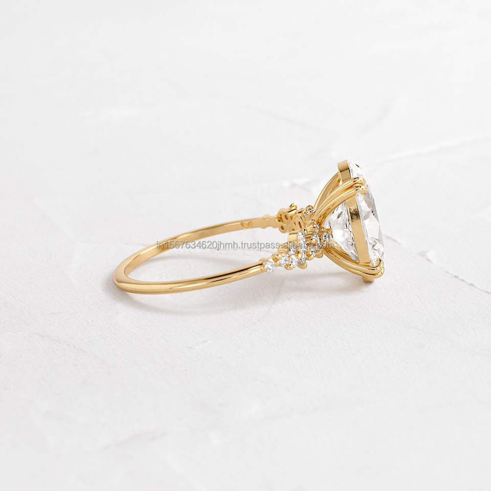 IGI/ Lab cultivé ovale coupe Vintage 14k jaune mariage/bague de fiançailles unisexe or blanc broche réglage anniversaire fête digne