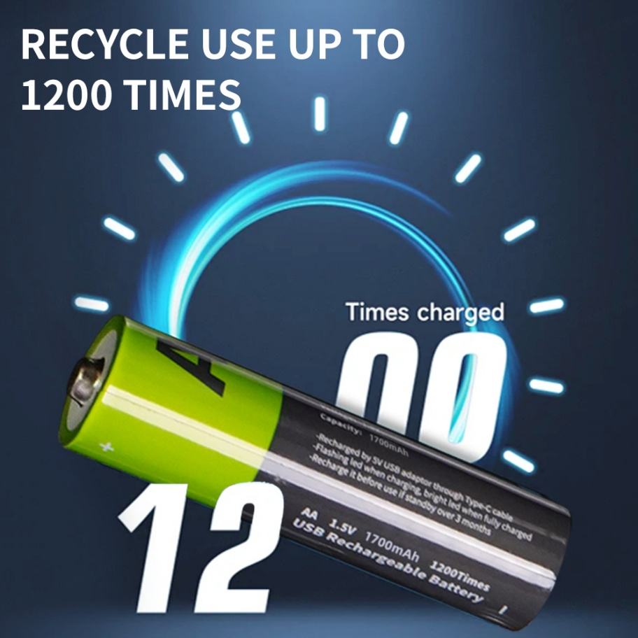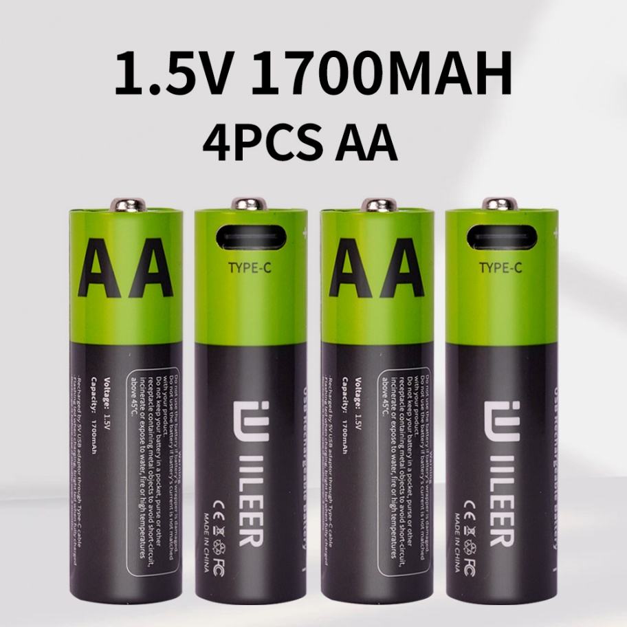 Batteries au lithium IILEER, portables, AA 1,5 V 1700 mAh, charge rapide, rechargeables, pour jouets, lampes de poche