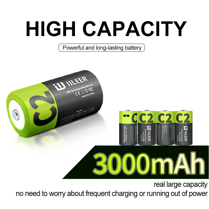 IILEER nouvelle conception 1.5V 3000mAh Type C USB C2 Rechargeable type-c charge batterie au Lithium-ion pour appareil photo