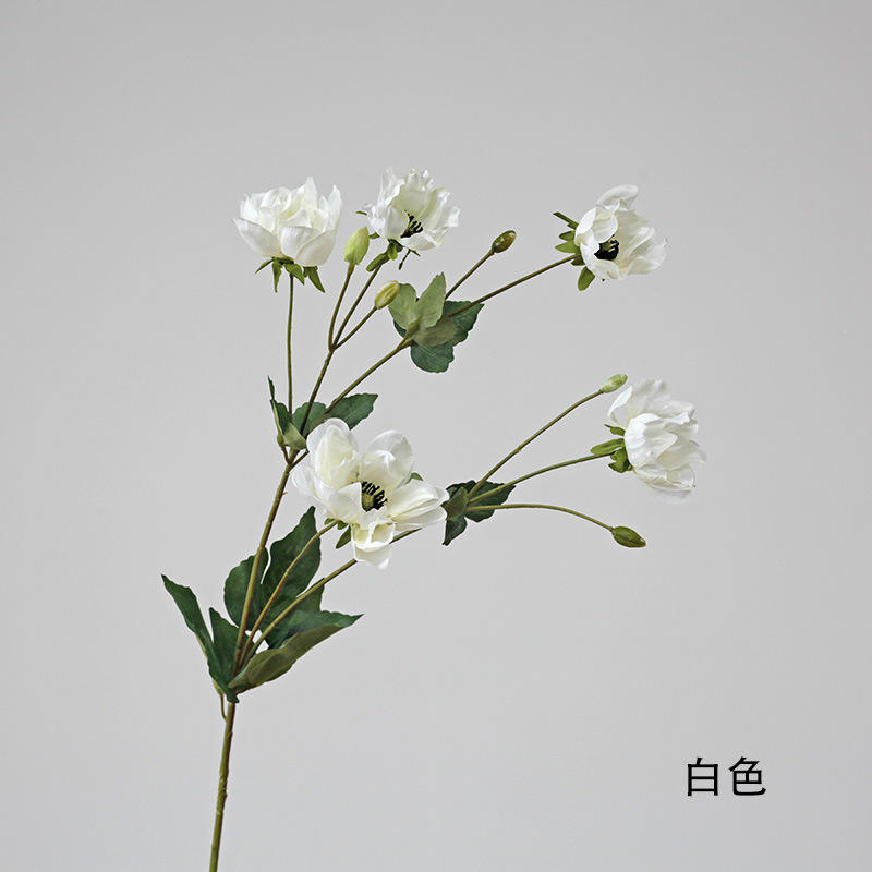 IJ007 fleur artificielle d'anémone de soie blanche à tige unique haut de gamme européenne pour la décoration de la fête des mères de noël à la maison