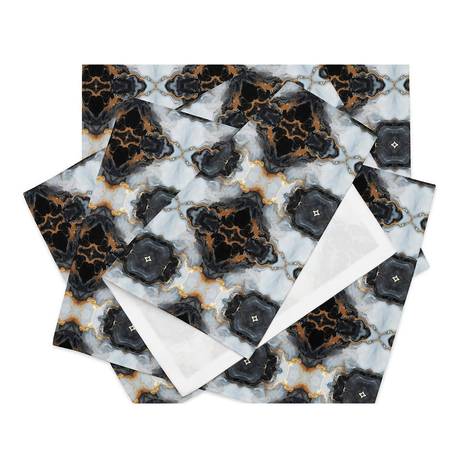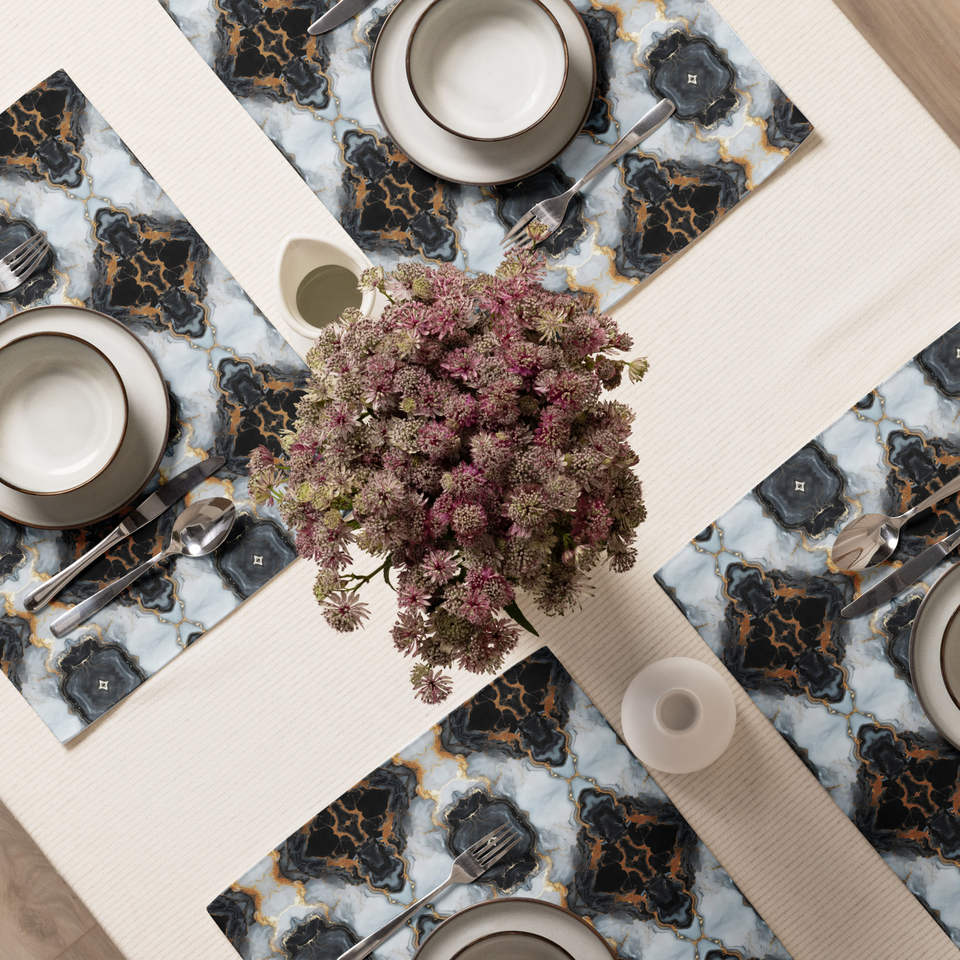 Ensemble de 4 sets de table IKE-Conic de luxe, faits à la main, rayés et floraux, en tissu polyester antidérapant, lavables, pour usage domestique, avec logo personnalisé