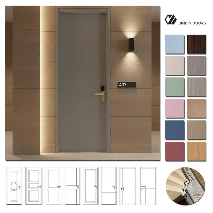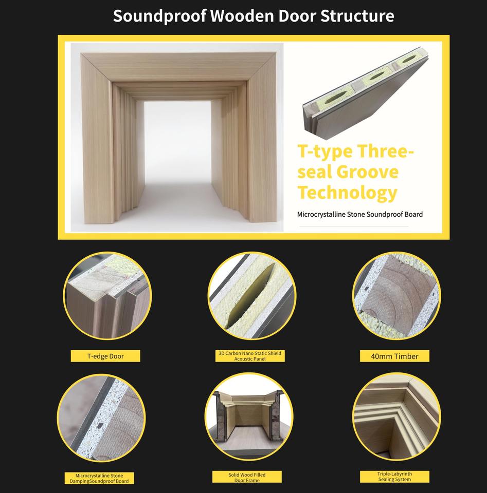 IKN Nusantara Matériaux de construction écologiques, porte en bois insonorisée, technologie d'étanchéité de type T, isolation acoustique 55 dB, respectueux de l'environnement, à base d'eau