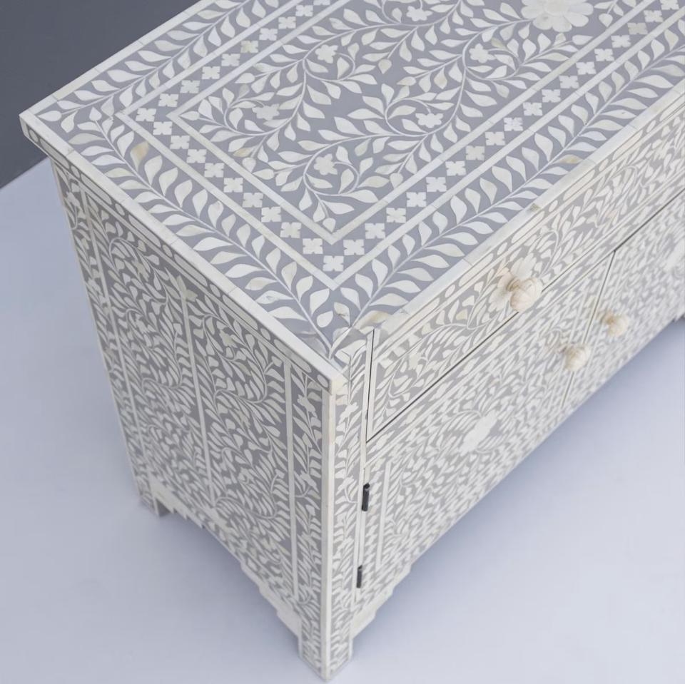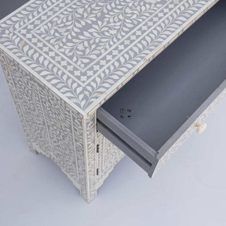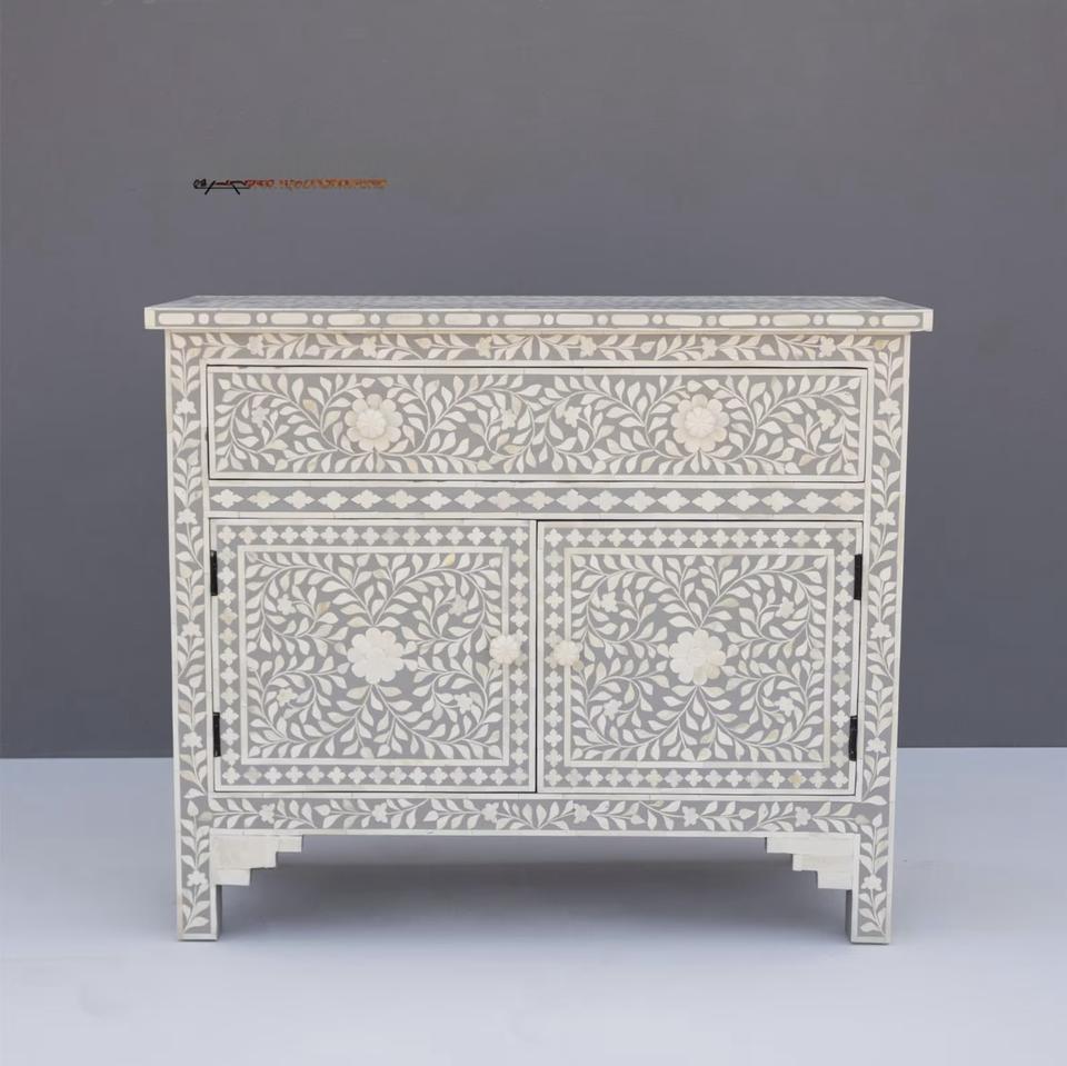 Meuble de rangement portable ILAHI avec tiroir en os incrusté, design moderne et détails en agate