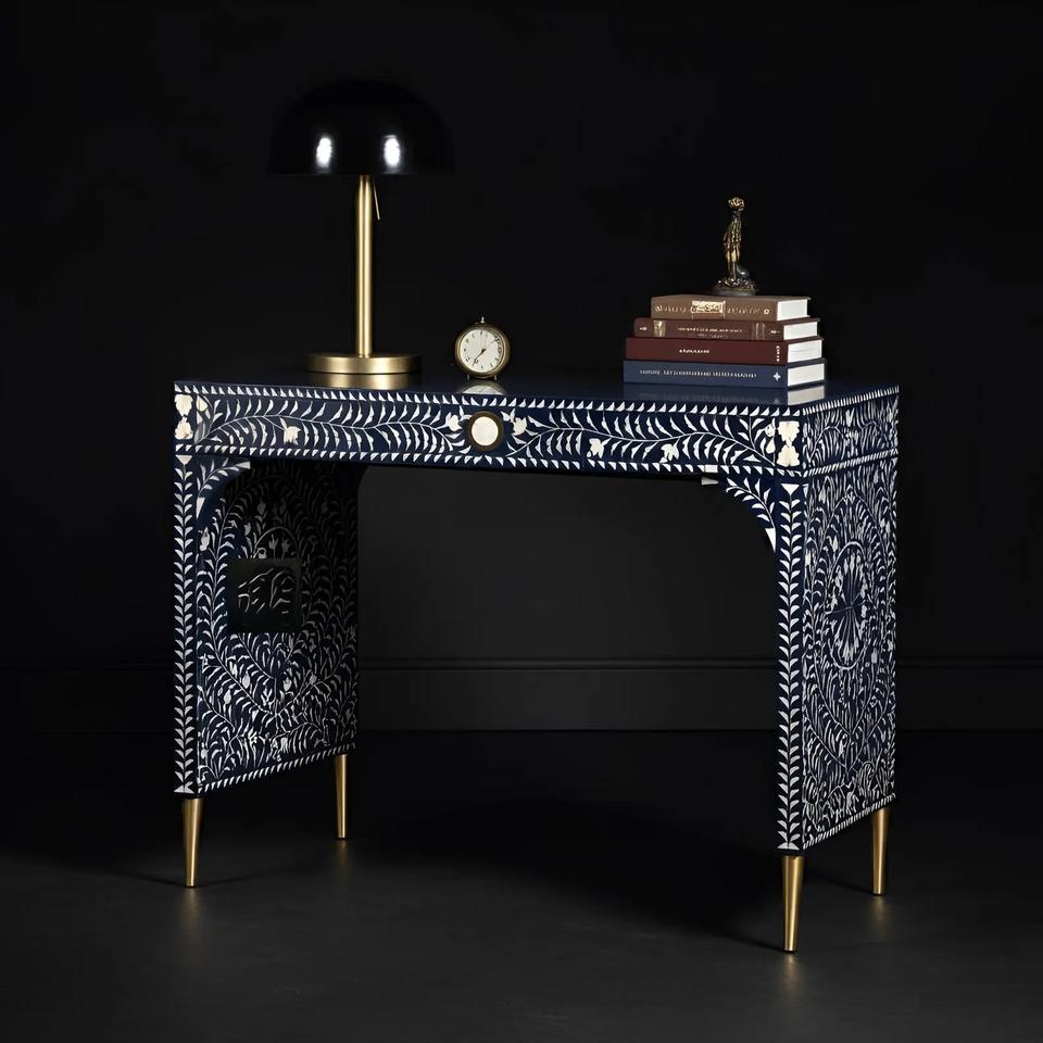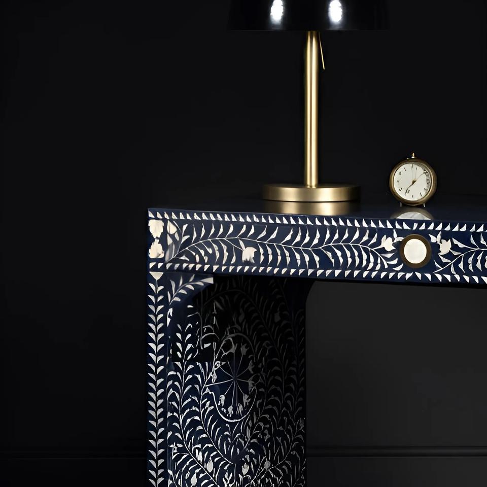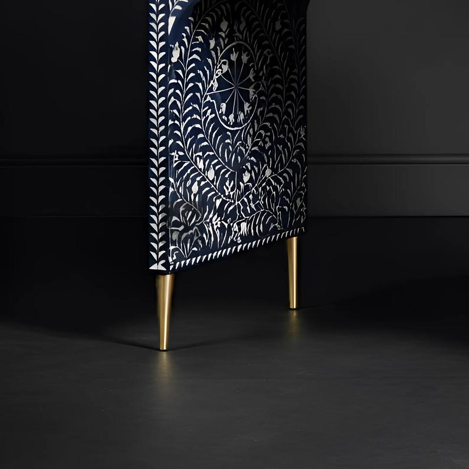 Meuble de rangement portable ILAHI avec tiroir en os incrusté, design moderne et détails en agate