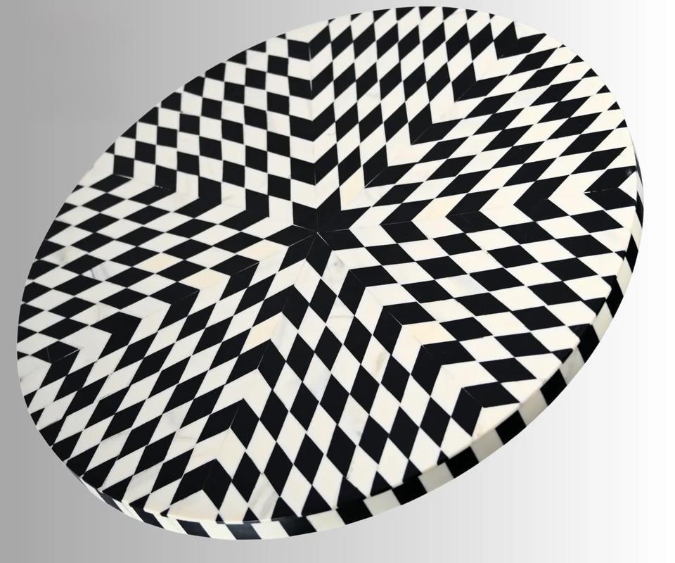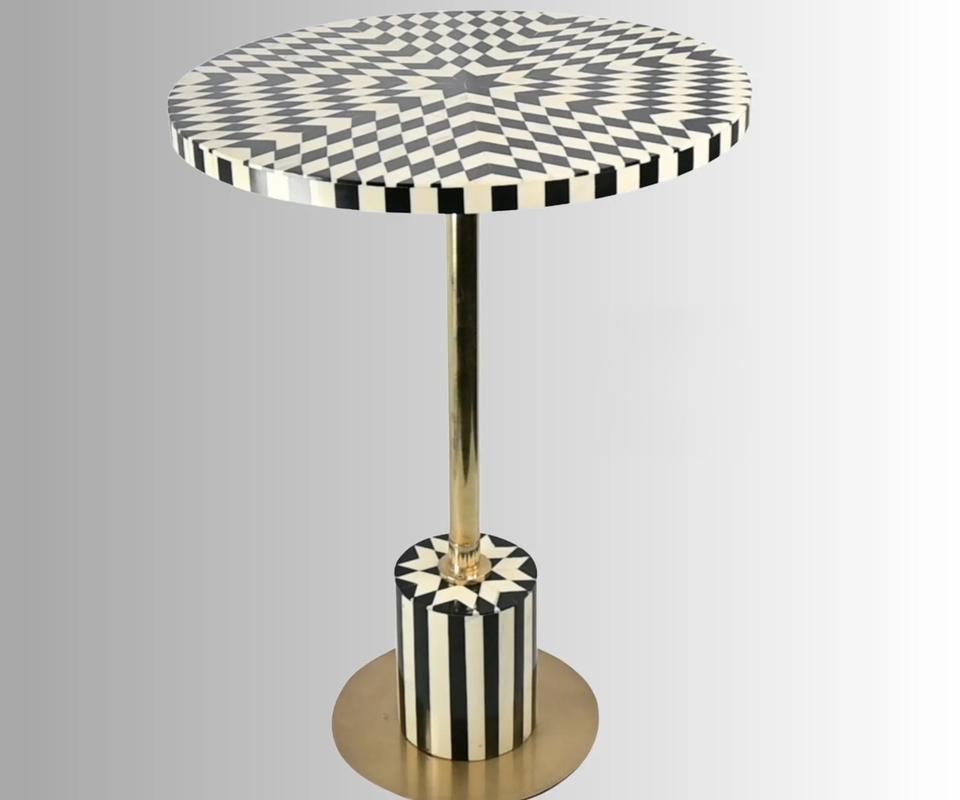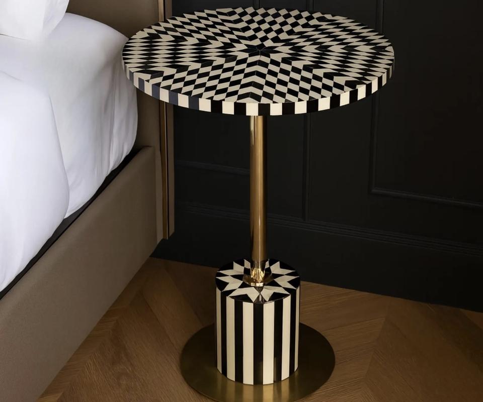Table à tiroirs ILAHI avec incrustation de os et support en laiton, design moderne, détails en agate, rangement à trois niveaux, meuble portable pour la maison
