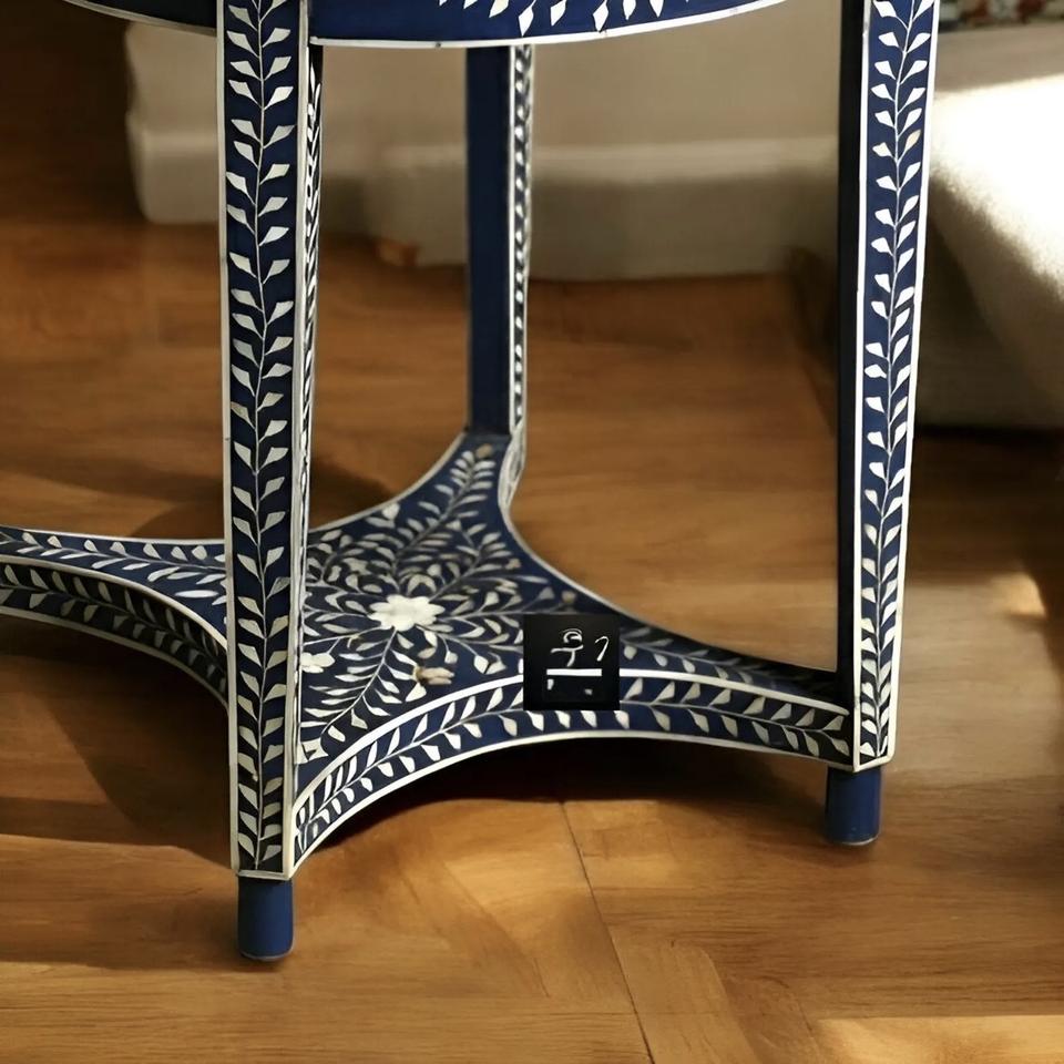 Table à tiroirs ILAHI avec incrustation de os et support en laiton, design moderne, détails en agate, rangement à trois niveaux, meuble portable pour la maison