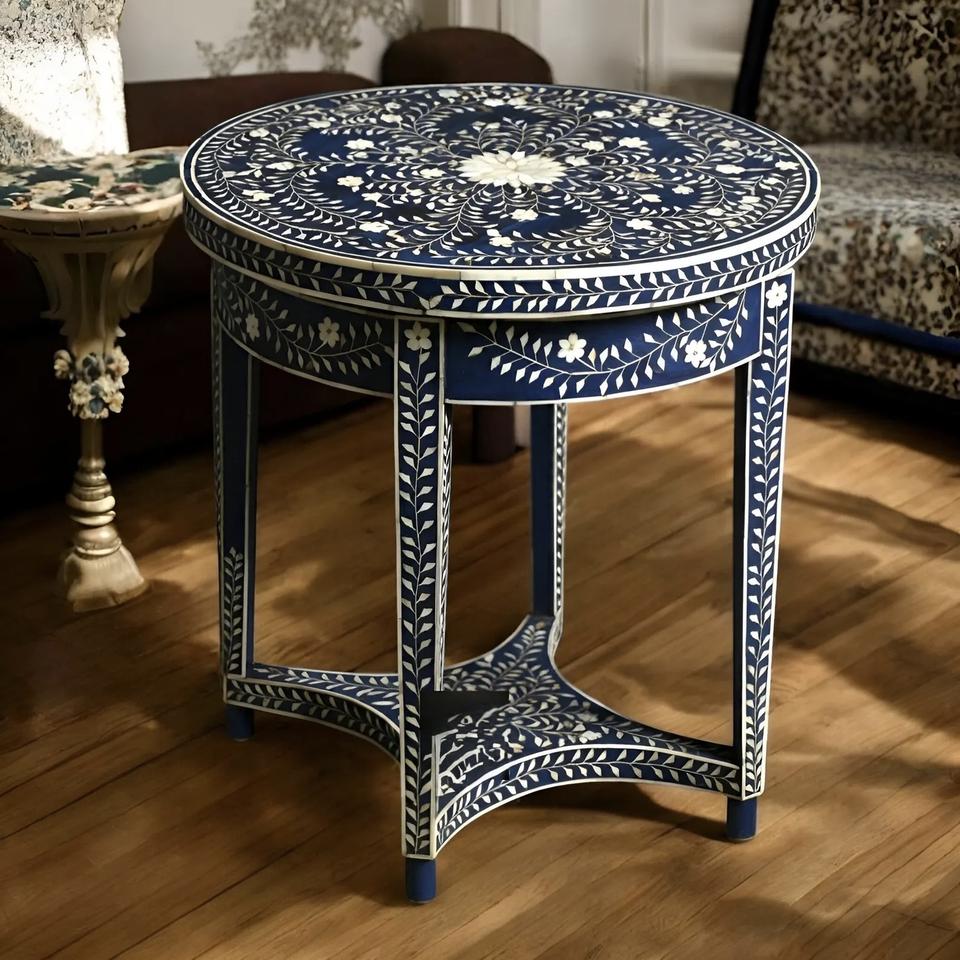 Table à tiroirs ILAHI avec incrustation de os et support en laiton, design moderne, détails en agate, rangement à trois niveaux, meuble portable pour la maison