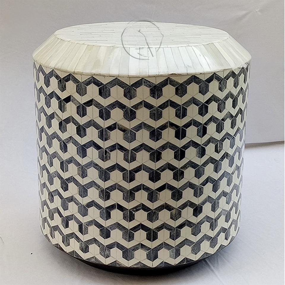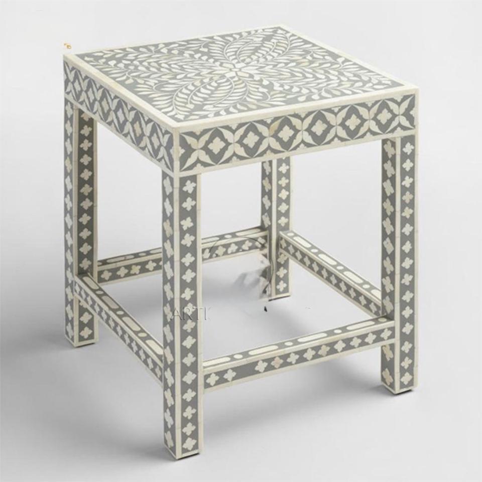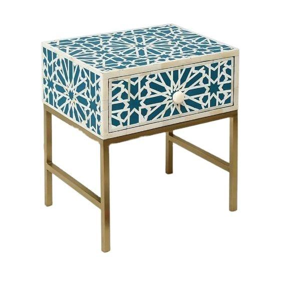 Table à tiroirs en os incrusté de la marque ILAHI, design moderne, détails en agate, rangement à trois niveaux, meuble portable pour la maison