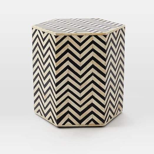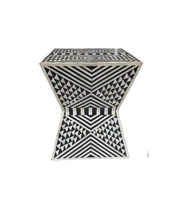 Table à tiroirs ILAHI avec incrustation de os et support en laiton, design moderne, détails en agate, rangement à trois niveaux, meuble portable pour la maison