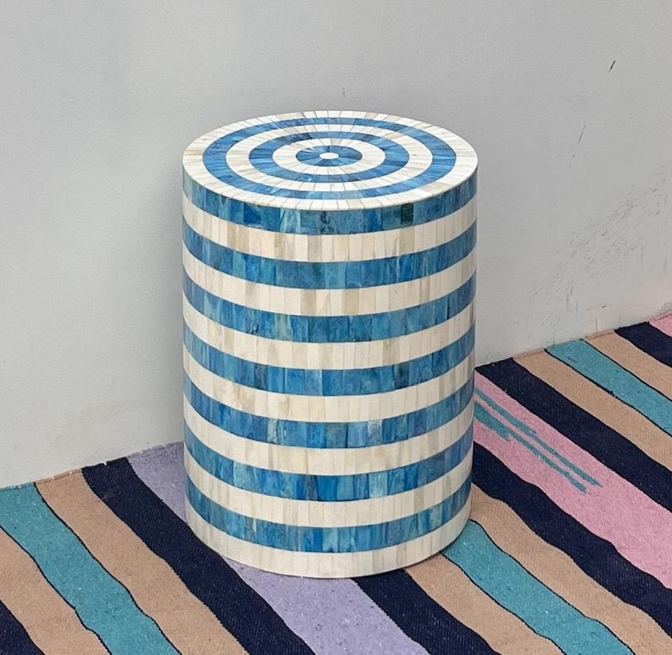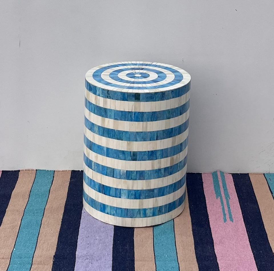 Table à tiroirs en os incrusté de la marque ILAHI, design moderne, détails en agate, rangement à trois niveaux, meuble portable pour la maison