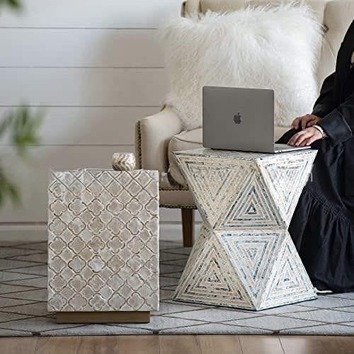 Table à tiroirs en os incrusté de la marque ILAHI, design moderne, détails en agate, rangement à trois niveaux, meuble portable pour la maison