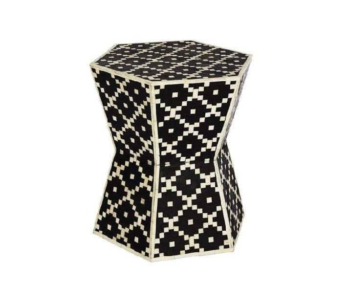 Table à tiroirs en os incrusté de la marque ILAHI, design moderne, détails en agate, rangement à trois niveaux, meuble portable pour la maison