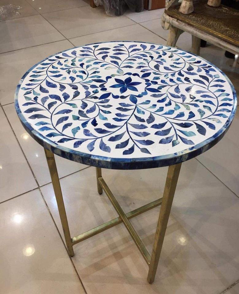 Table à tiroirs en os incrusté de la marque ILAHI, design moderne, détails en agate, rangement à trois niveaux, meuble portable pour la maison