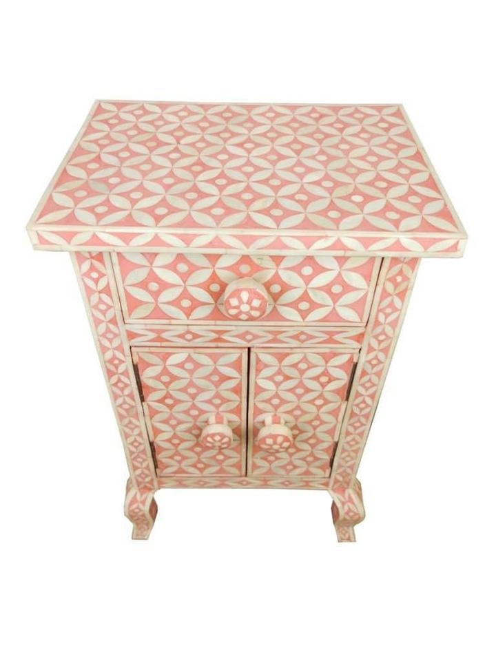 Table à tiroirs en os incrusté de la marque ILAHI, design moderne, détails en agate, rangement à trois niveaux, meuble portable pour la maison