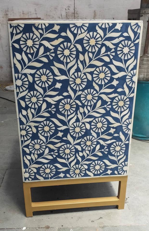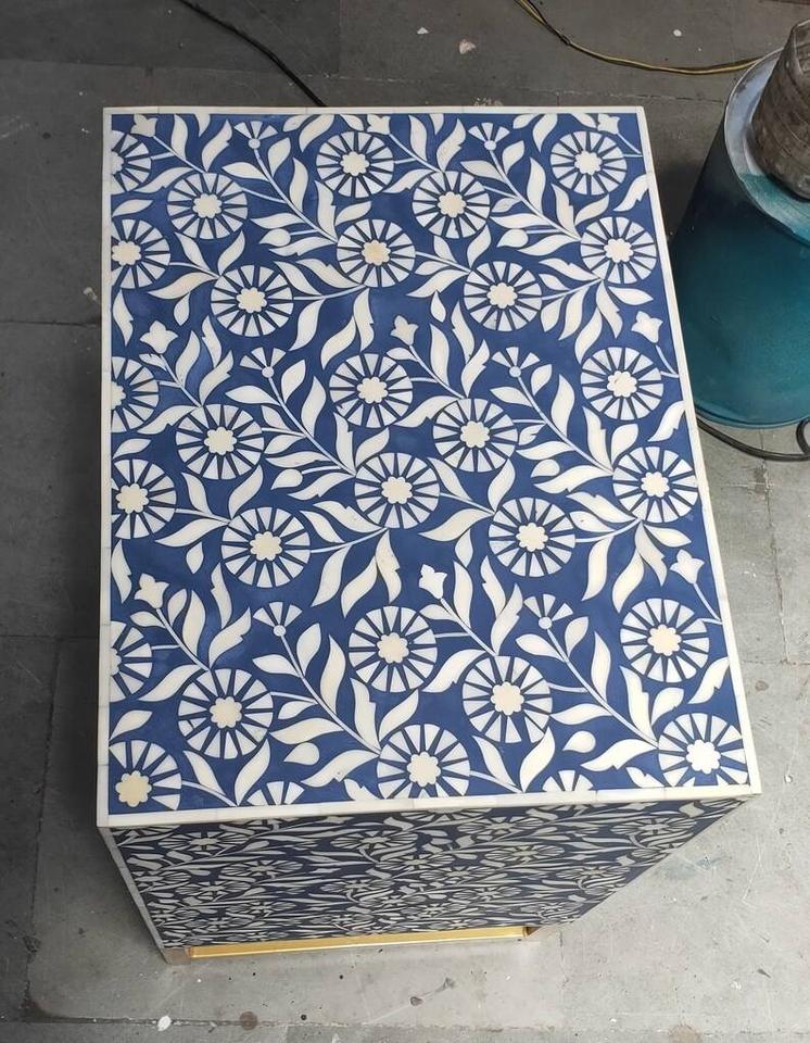 Table à tiroirs en os incrusté de la marque ILAHI, design moderne, détails en agate, rangement à trois niveaux, meuble portable pour la maison