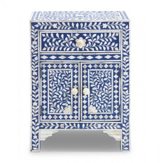 Table à tiroirs en os incrusté de la marque ILAHI, design moderne, détails en agate, rangement à trois niveaux, meuble portable pour la maison