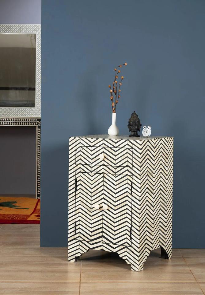 Table à tiroirs en os incrusté de la marque ILAHI, design moderne, détails en agate, rangement à trois niveaux, meuble portable pour la maison