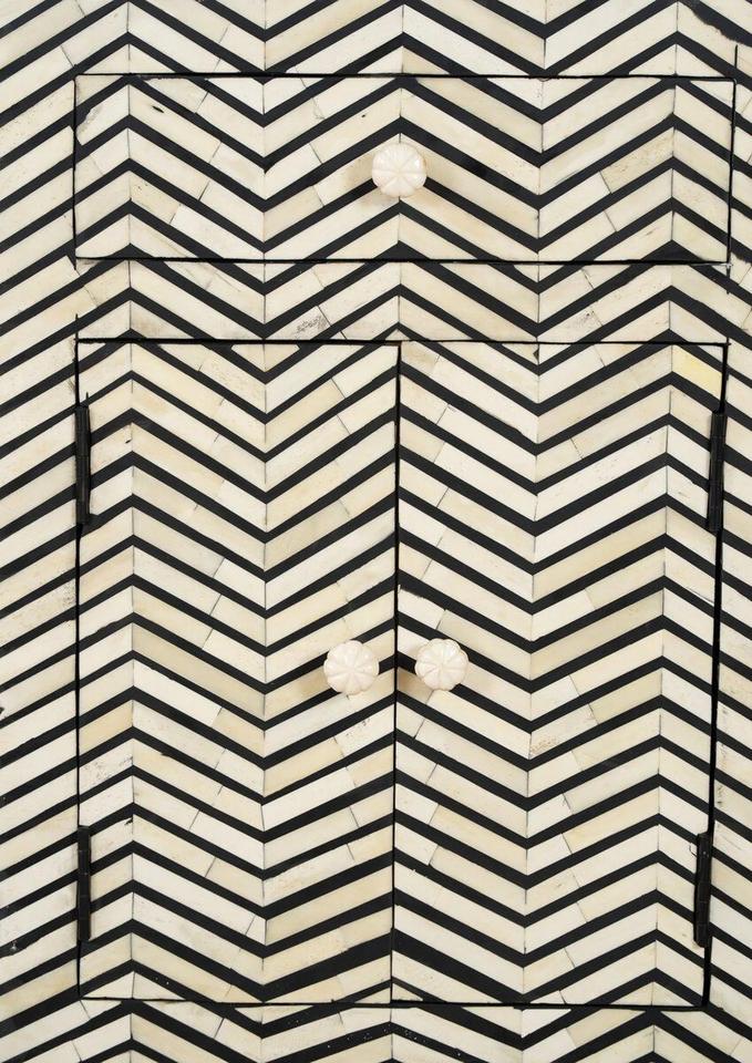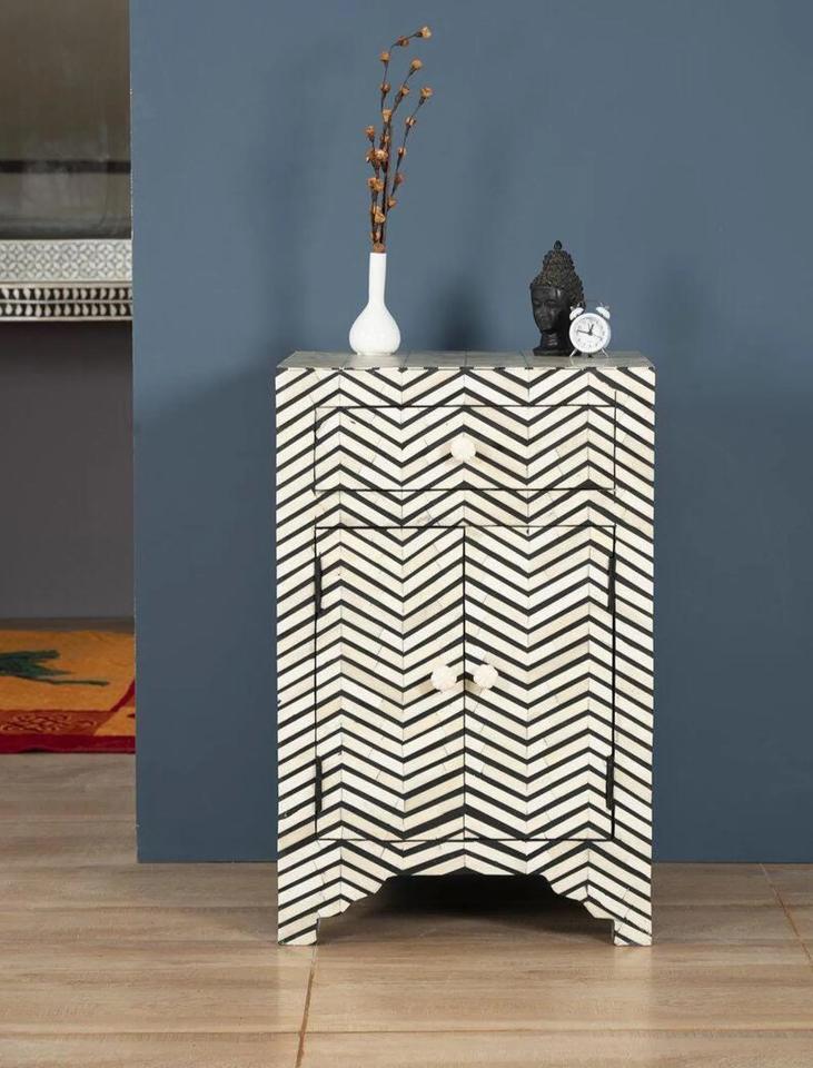 Table à tiroirs en os incrusté de la marque ILAHI, design moderne, détails en agate, rangement à trois niveaux, meuble portable pour la maison