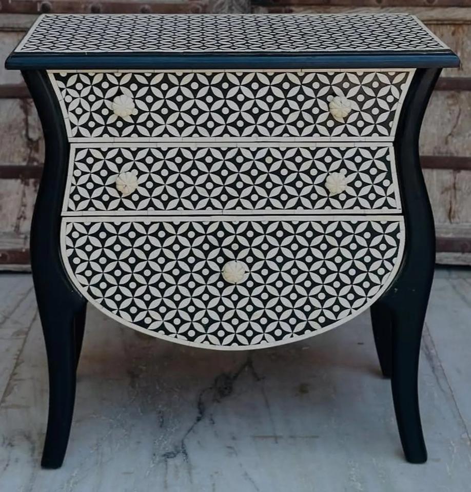 Table à tiroirs en os incrusté de la marque ILAHI, design moderne, détails en agate, rangement à trois niveaux, meuble portable pour la maison