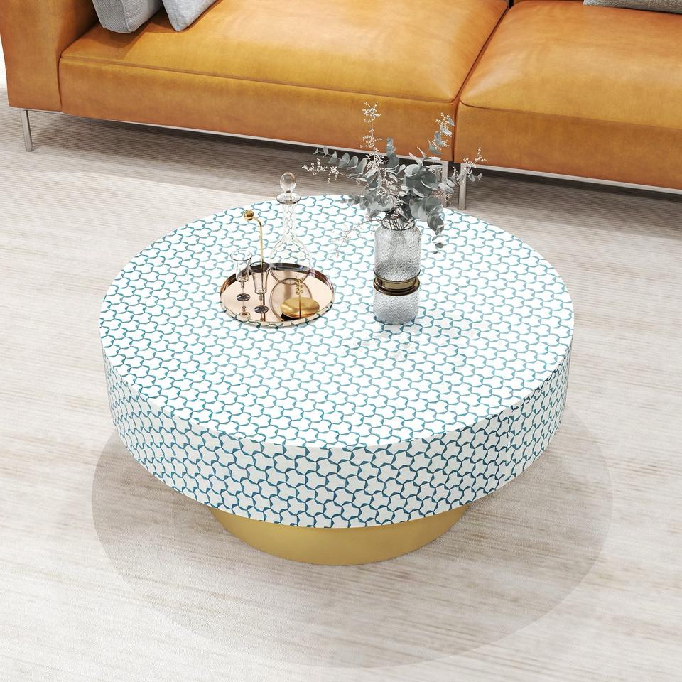 Table en os incrusté de la marque ILAHI, design moderne, détails en agate, rangement, meuble portable pour la maison