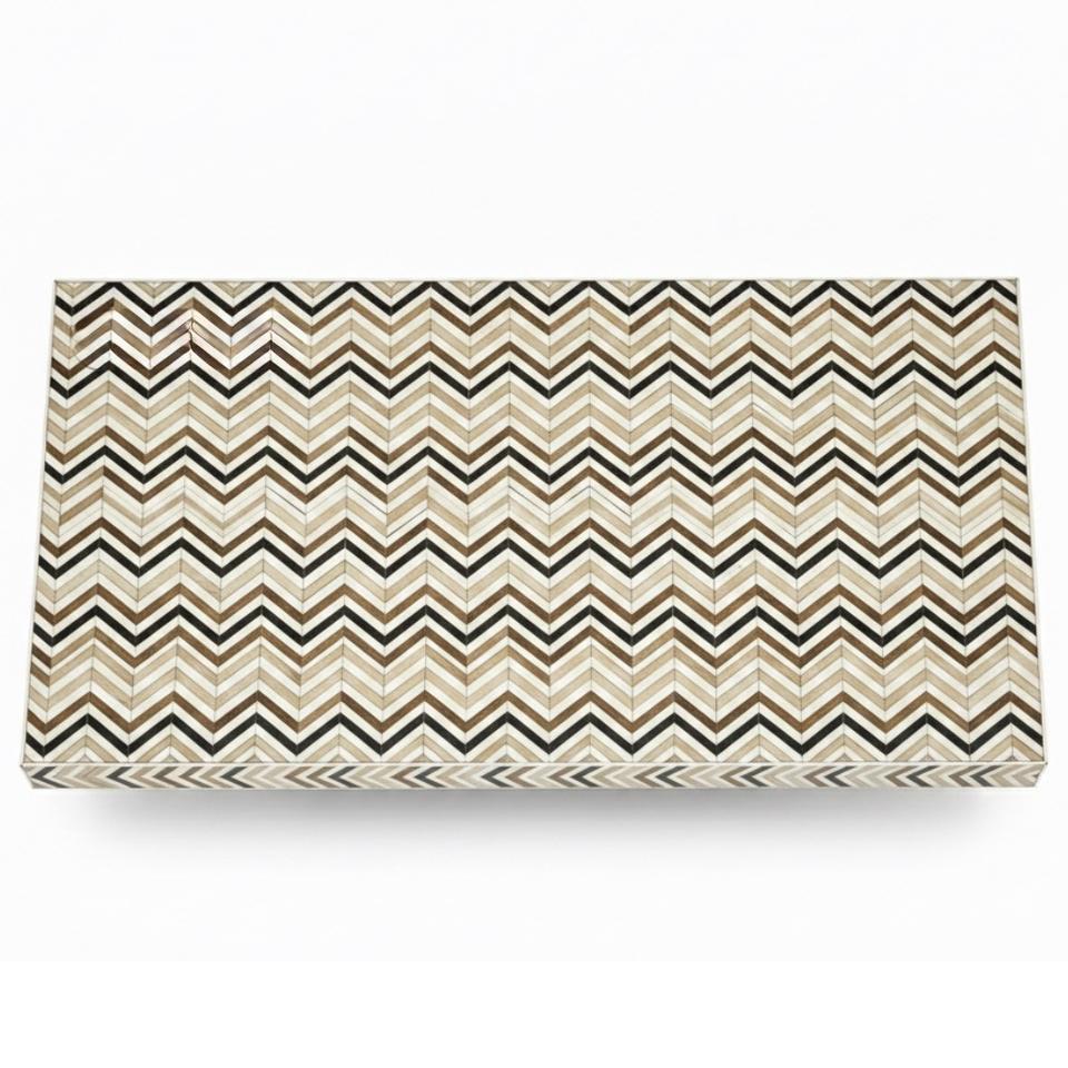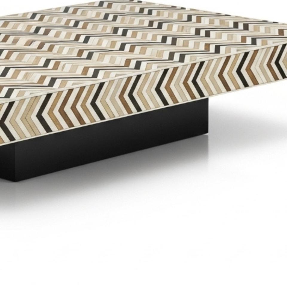 Table en os incrusté de la marque ILAHI, design moderne, détails en agate, rangement, meuble portable pour la maison