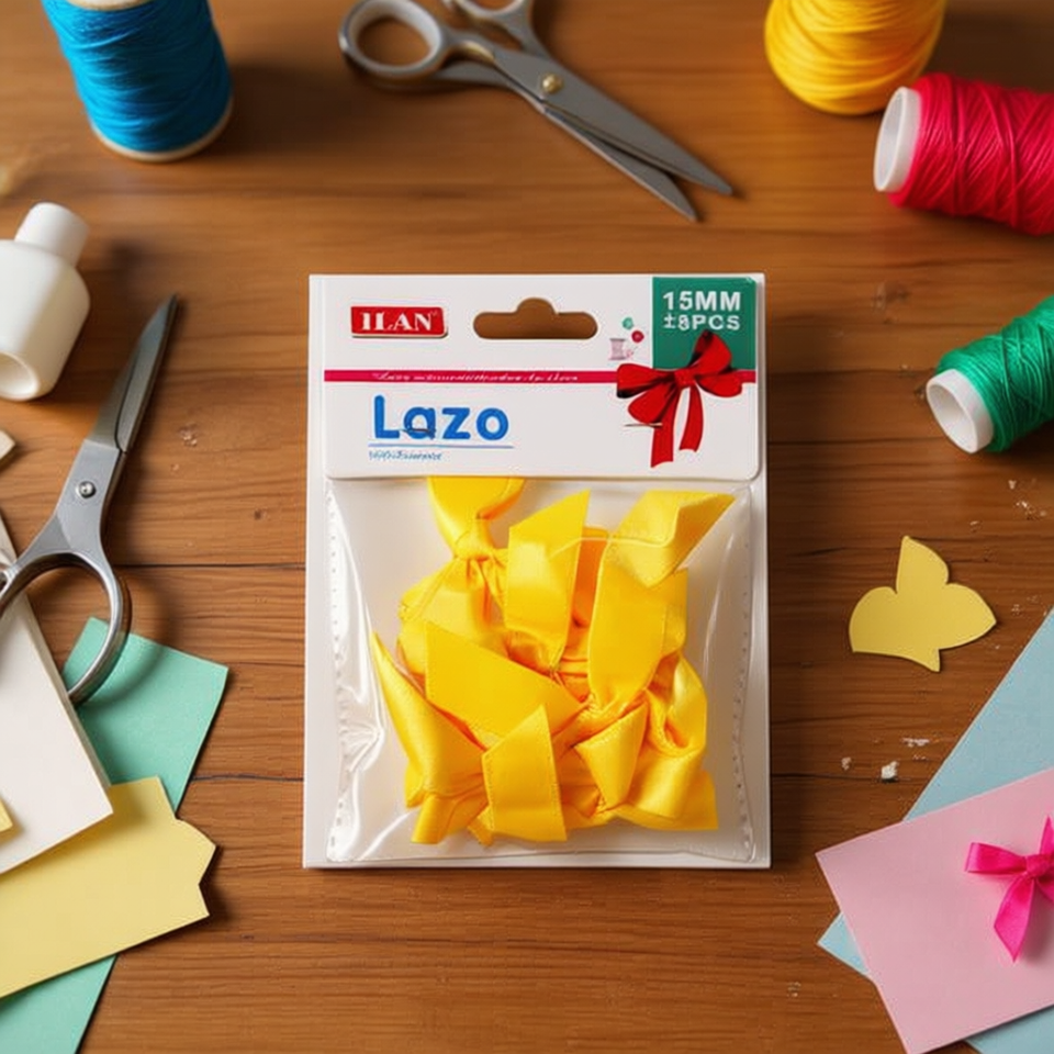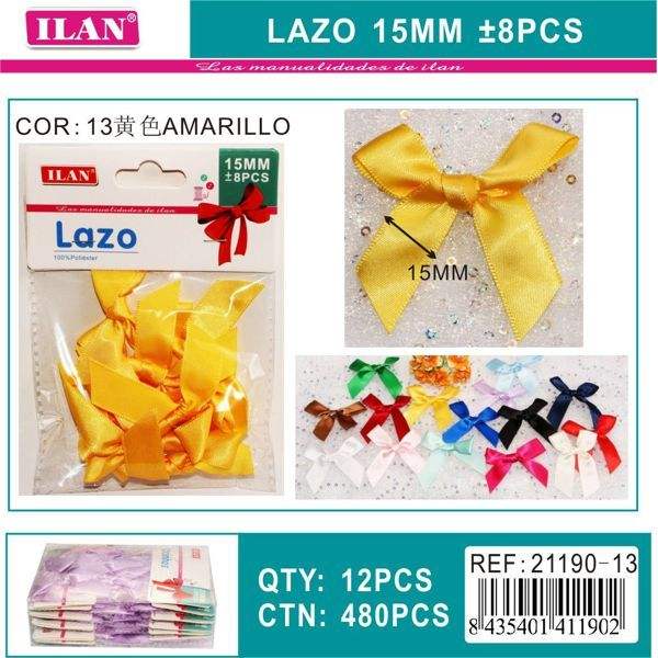 Noeuds en ruban jaune ILAN Lazo 15 mm pour travaux manuels et décorations