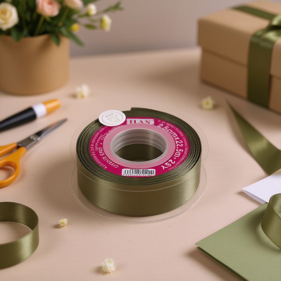 Ruban en satin ILAN 2,5 cm 25Y Vert olive D-45
