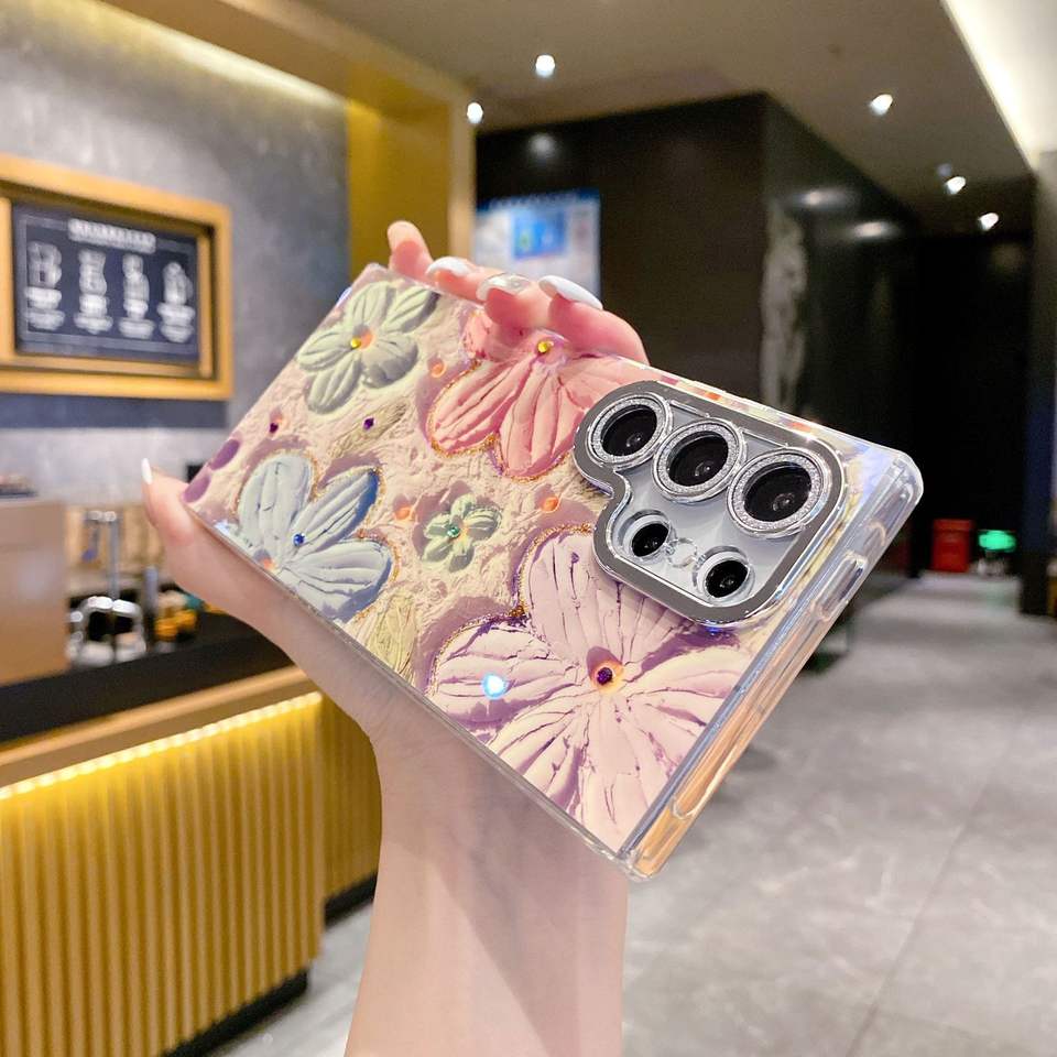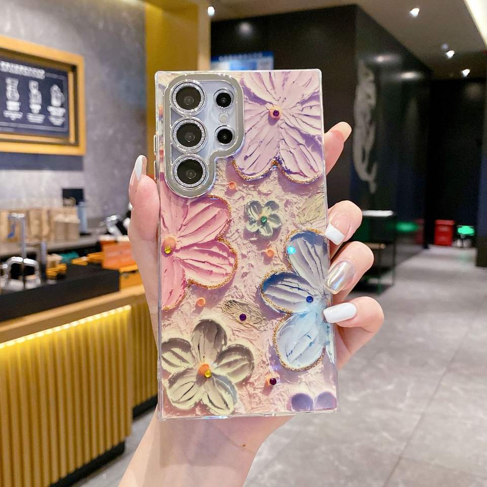 Coque de téléphone portable en galvanoplastie avec fleur et marbre IMD pour Samsung A56 A66 S25 S24 S21 S22 S23 Ultra