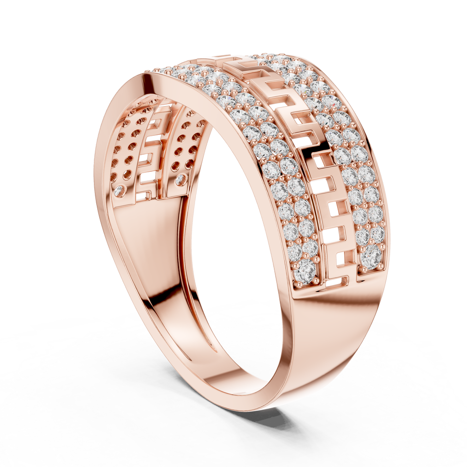 Bague de luxe en or rose 18 carats plaqué rhodium avec diamant de synthèse taillé motif clé grecque impériale, pour mariage, fiançailles, cadeau, usage quotidien ou bureau, pour homme