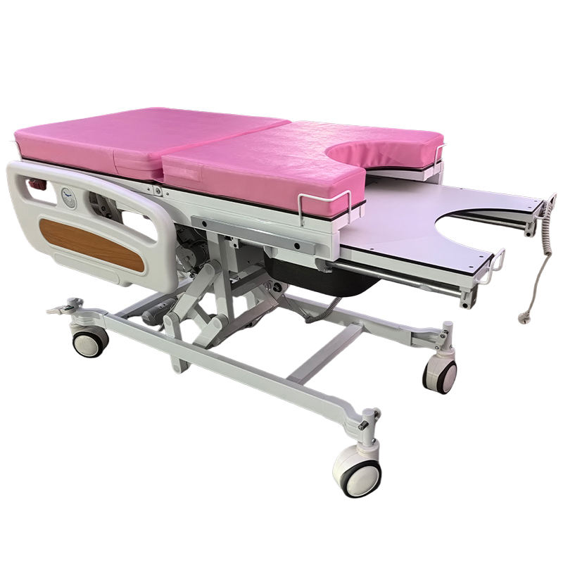 Lit d'accouchement gynécologique électrique multifonction rose ou bleu IN-GED02