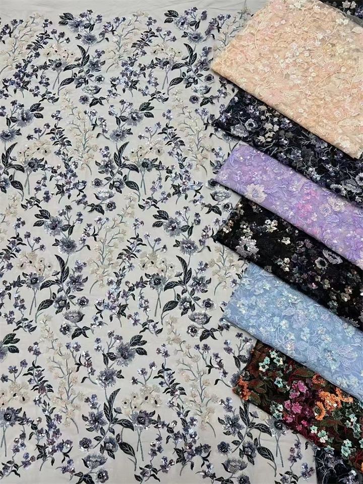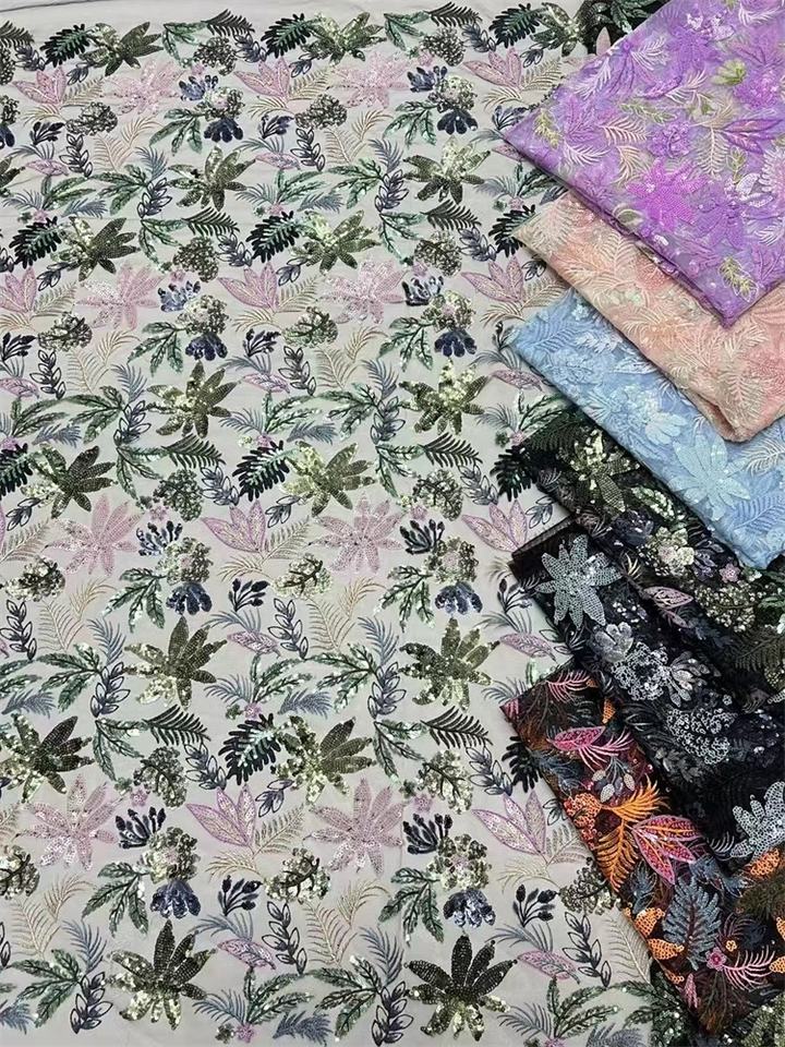 EN Stock en gros brillant perlé broderie 3D paillettes dentelle tissus pour vêtements de mariée personnalisé coloré Tube Sequin Tulle tissu