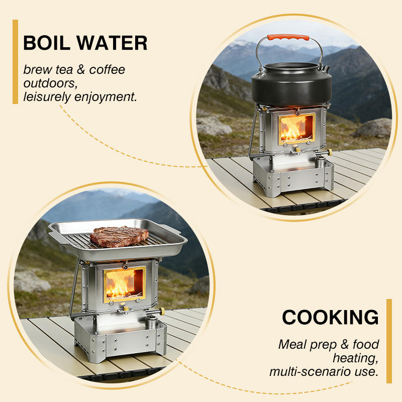INBESTCAMP Mini-radiateur à mazout portable en acier pour terrasse, jardin, intérieur, idéal pour pannes de courant, avec plaque de cuisson intégrée