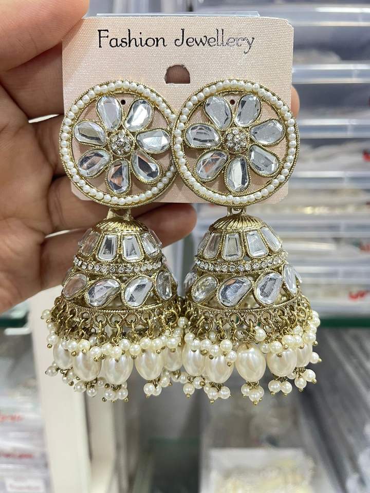 BOUCLES D'OREILLES JUMKHAS TRADITIONNELLES INDIENNES & BOUCLES D'OREILLES KUNDAN EN PLAQUÉ OR AVEC PERLES POUR FEMMES ET FILLES