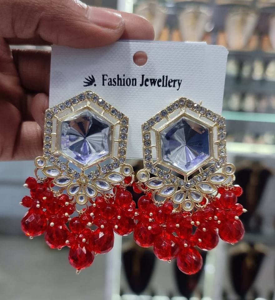 BOUCLES D'OREILLES INDIENNES TRADITIONNELLES ET À LA MODE BOUCLES D'OREILLES PLAQUÉES OR KUNDAN AVEC PERLES ET BOUCLES D'OREILLES BOLLYWOOD POUR FEMMES ET FILLES