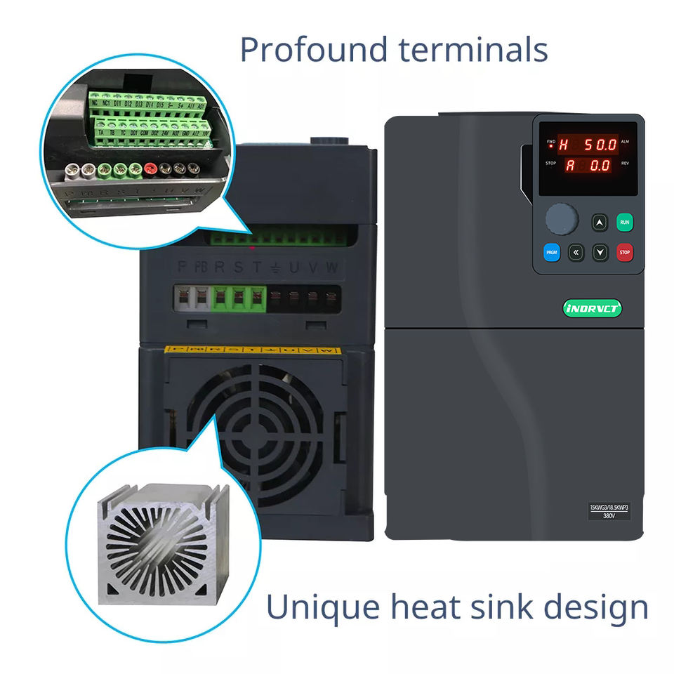 INDRVCT Frequency Converter Inverter VFD 3 Phase 220V 380V 4KW-15KW VFD Variable Frequency Driver for AC 3-Phase Booster Pump