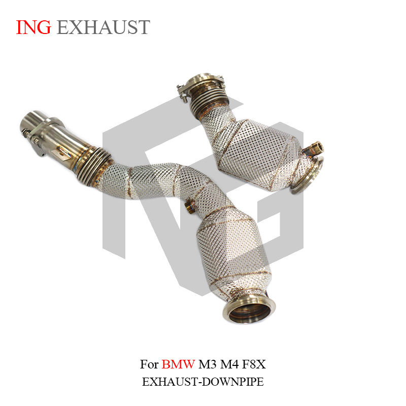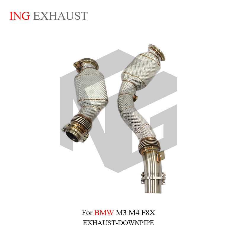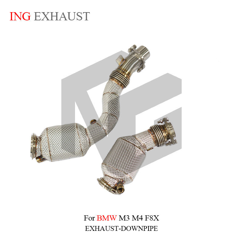 ING pour BMW M3 M4 F80 F82 3.0T Downpipe d'échappement en acier inoxydable avec bouclier thermique, pièces de performance automobile F8X