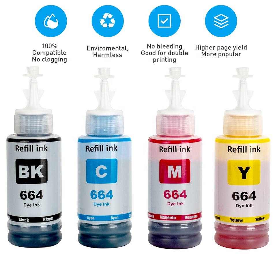 INK-POWER 664 T664 T6641 Premium Compatible Bouteille Recharge Tintas Encre pour Epson L380 L220 L130 L3060 L3110 L120 L565 L555 Imprimante