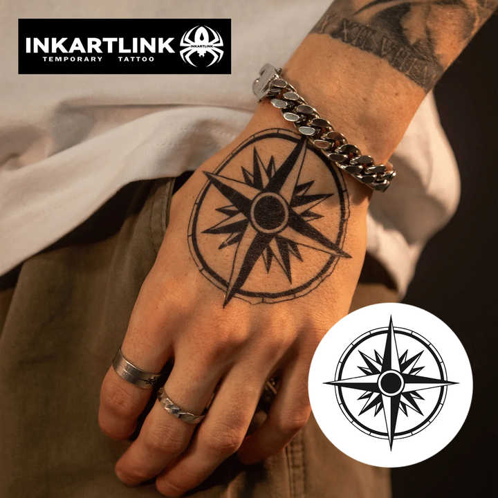 INKARTLINK Autocollant de tatouage boussole, géométrie nautique, motif végétal, semi-permanent 15 jours, art corporel pour main et poignet, tatouage temporaire en gros