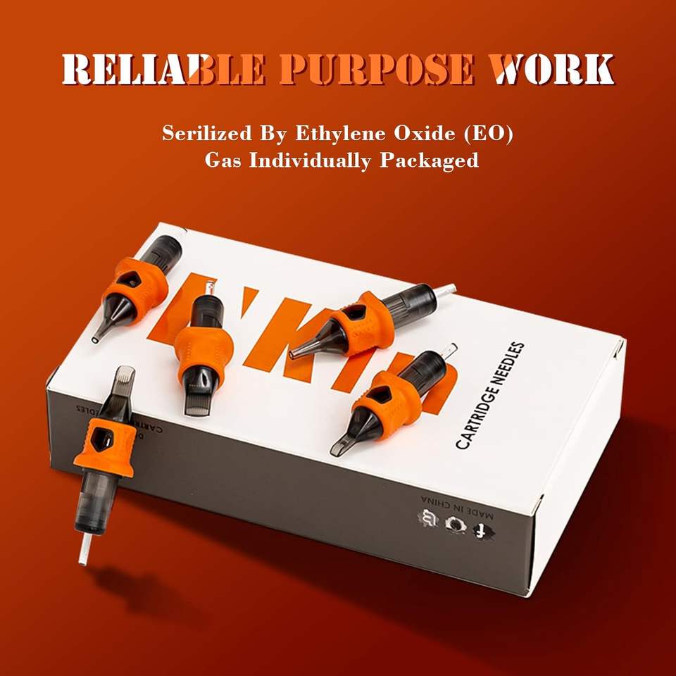 Aiguilles de tatouage INKin 15RM, 16 pièces, cartouches à rebord pour les doigts # 12 Tatouages standard 15 Magnum longs et effilés résistants à l'eau