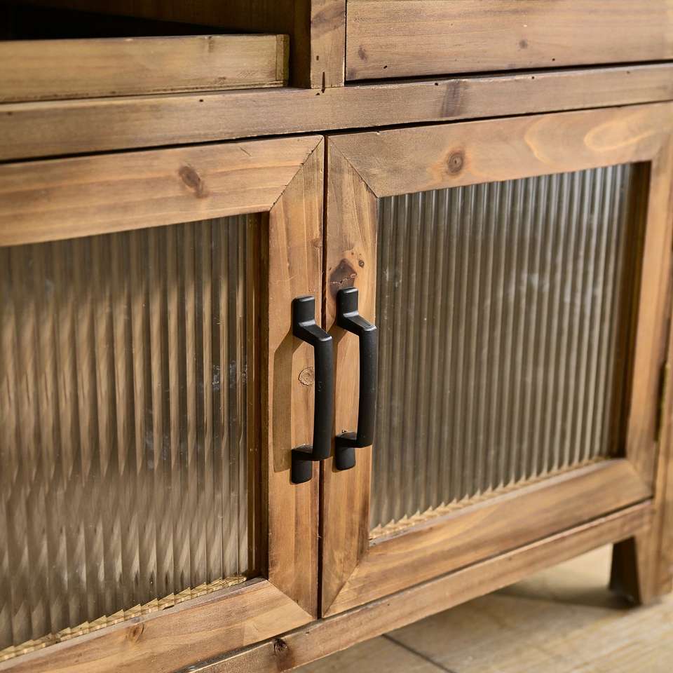 Meuble de rangement INNOVA en bois massif, style rustique vintage, avec porte vitrée et 2 tiroirs, idéal pour bar à domicile et appartement