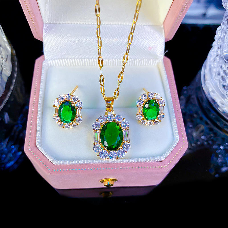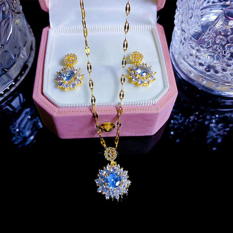 Ensemble collier et boucles d'oreilles en zircon délicat, chaîne en acier inoxydable, plaqué or véritable PVD, fleur tombante, bijoux de mariée pour femmes