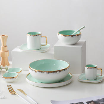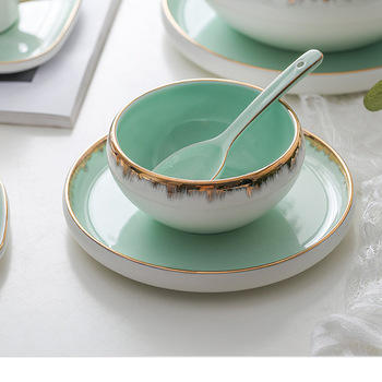 Nom du produit:Ensembles de vaisselle Eletroplating Gold Edge vert clair