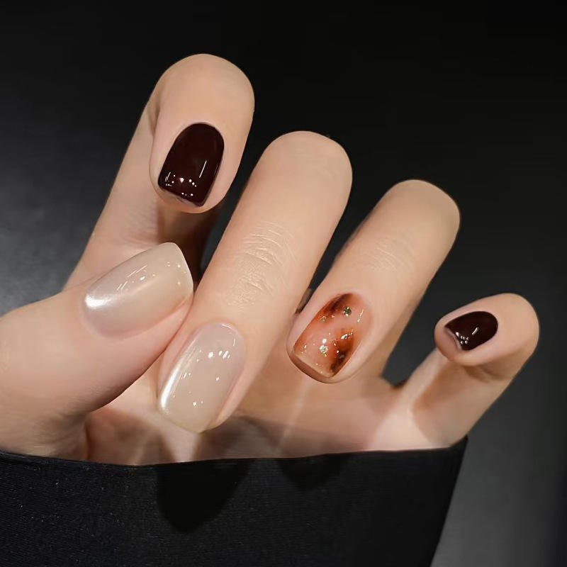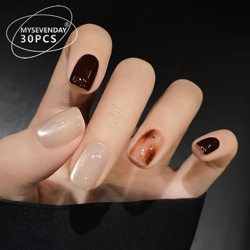 INS court Style haut de gamme vin rouge dégradé ongles autocollants 30 pièces Hot Girl portable faux ongles