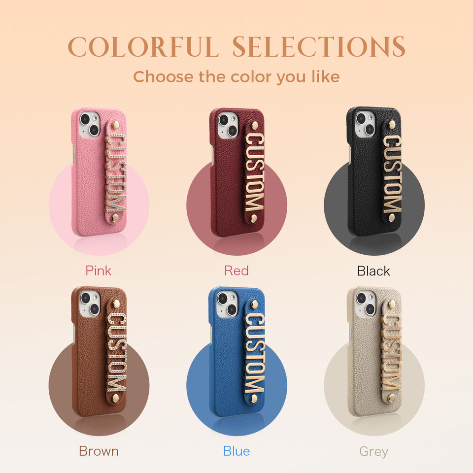Nom du produit:Coque de téléphone en cuir véritable avec nom personnalisé