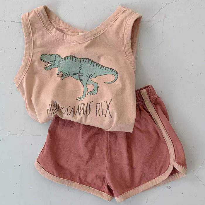 Ensemble d'été INS pour bébé avec imprimé dinosaure, débardeur sans manches et short pour nourrisson