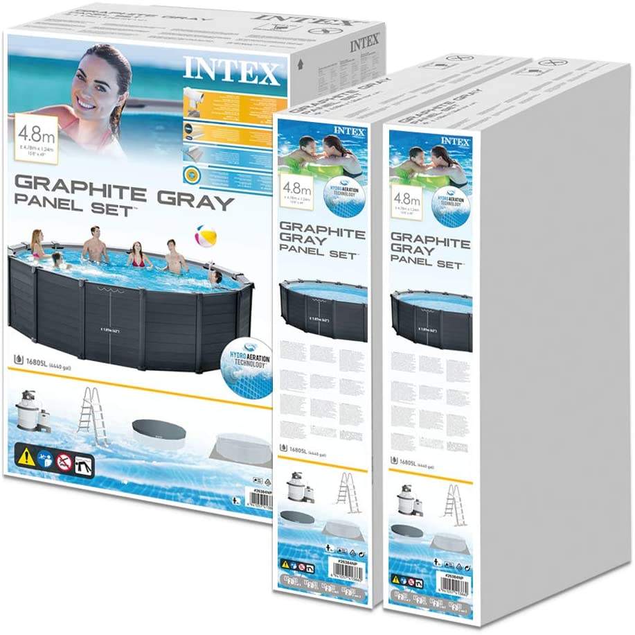Piscine à panneaux INTEX 15 pieds 8 pouces x 49 pouces gris graphite, fabriquée en acier inoxydable durable et en PVC