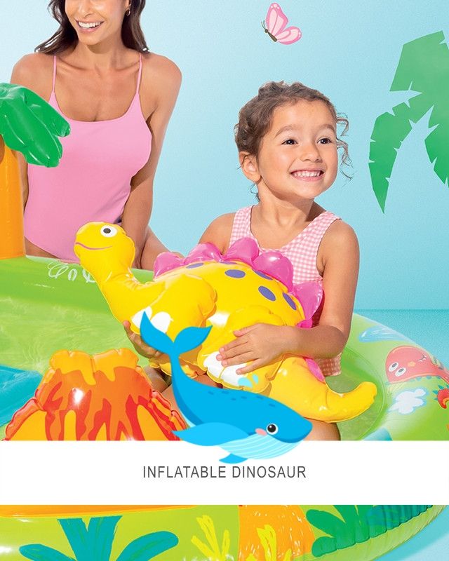 INTEX 57166 LITTLE DINO Piscine gonflable hors sol pour enfants avec toboggan aquatique et aire de jeux 1,91mX1,52mX58cm