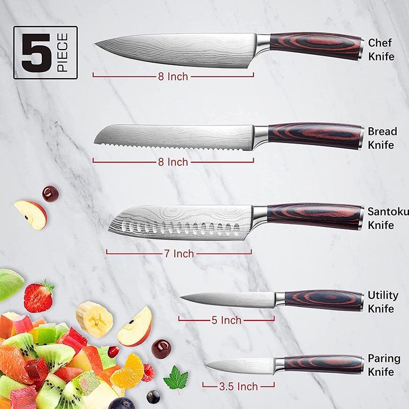 Nom du produit:Ensemble de couteaux de cuisine en acier inoxydable avec manche en pakka.